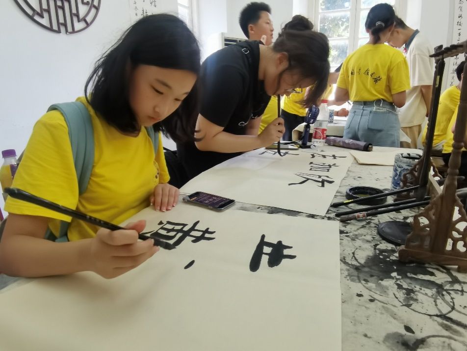 在老师与同学的带领下,营员们参观了崇实女中的书法体验馆、茶艺馆、按摩休息室等特色社团教室,体验汉字书写、中国茶艺和按摩器械,领略中华优秀传统文化的独特魅力、博大精深,在书写中体悟文化、传承文化。